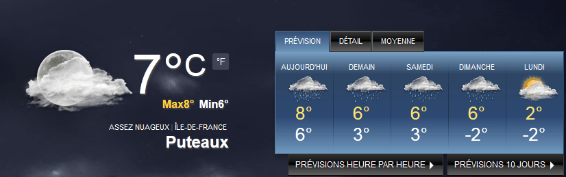 A première vue, cela semble très compliqué d’afficher le temps qu’il fera demain ou encore après-demain sur un site Internet. Vous n’êtes pas devin après tout ! Mais que nenni, Yahoo est là pour vous aider car lui l’est un petit peu. Il est capable de prédire plus ou moins bien la météo et il met cette information à disposition de tous.